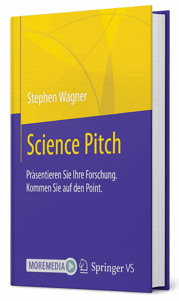 In meinem Buch „ Science Pitch “ bekommen Sie alle Informationen, um ihr Projekt überzeugend und mit Power auf den Point zu präsentieren. Sie kombinieren prägnante Botschaften mit ihrer fachlichen Expertise und entwickeln so ein einzigartiges wissenschaftliches Storytelling. Das ermöglicht Ihnen, Kurzvorträge erfolgreich zu halten und Fördermittel für ihre Projekte zu gewinnen.