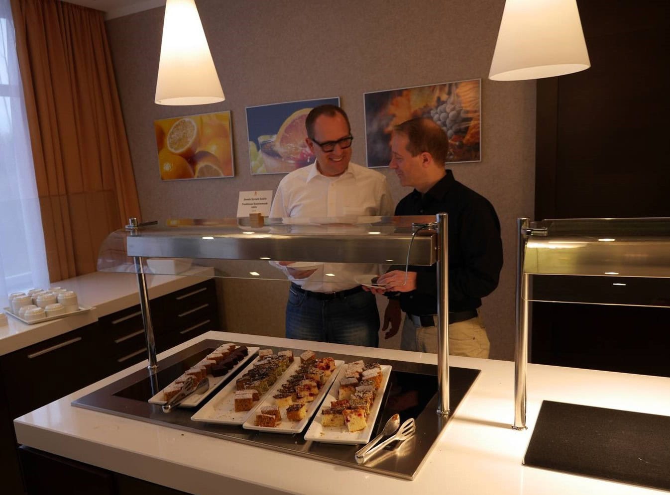 Das Thema der Veranstaltung ist natürlich ein guter Aufhänger, um den Kontakt herzustellen: „Guten Abend. Was versprechen Sie sich vom heutigen Vortrag?“ oder „Was interessiert Sie besonders am Thema Zukunftsszenarien?“ Die Pause und das Ende der Veranstaltung sind tolle Möglichkeiten, um mit Fragen wie „Was nehmen Sie vom heutigen Vortrag für sich mit?“ oder „Wie hat Ihnen der Vortrag von Frau Vogel gefallen?“ den Einstieg zu finden.